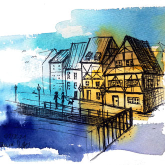 Ob schwarz-weiss Skizzen oder mit Aquarellfarben kolorierte Zeichnungen, Skizzenwelt hat viele Gesichter. Dabei werden architektonische Zeichnungen mit individuellen Farbwelten kombiniert und fliessen so zu stimmungsvollen Bildern zusammen. Hier präsentiere ich dir eine Auswahl meiner Werke und vielleicht findest auch du ein Bild, das dich besonders anspricht und in dein Zuhause passt. Klicke hier, wenn du mehr über mich erfahren möchtest.